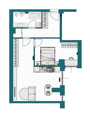 L’appartamento, sito al piano rialzato di un contesto curato, si apre su una comoda bussola d’ingresso che conduce al luminoso soggiorno con cucina a vista, perfetto per vivere e ricevere in un ambiente moderno e funzionale.